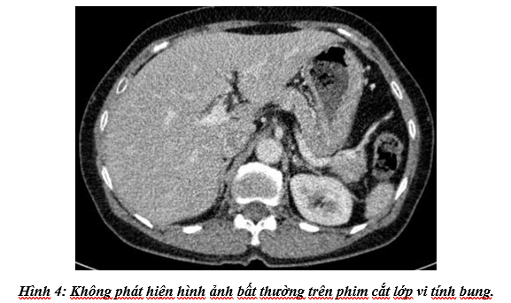 Cắt lớp vi tính bụng: Không phát hiện tổn thương bất thường.
