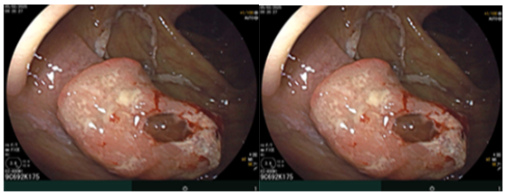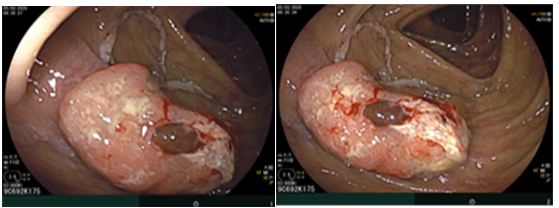 Hình 3. Tổn thương khối lồi xuất hiện ở vùng đại tràng lên