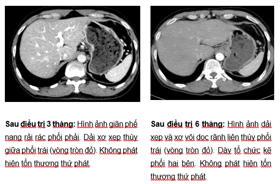 Lâm sàng: Sau 3 tháng bệnh nhân không còn đau tức ngực, không ho, không khó thở. Sau 6 tháng bệnh nhân ổn định, tăng cân, đại tiểu tiện bình thường, không đau ngực, không khó thở.