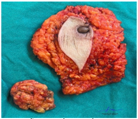 Hình 8: Hình ảnh mô vú sau phẫu thuật cắt bỏ tuyến vú phải cải biên (Patey)