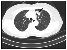 - Cắt lớp vi tính ngực (Bệnh viện Bạch Mai): phổi trái: phân thùy S3 có khối tỷ trọng tổ chức kích thước 18x26mm, bờ không đều ranh giới không rõ với màng phổi trung thất, lân cận có vài dải xẹp. Nốt bán đặc nhỏ thùy dưới đường kính khoảng 4mm. Vài hạch trung thất đường kính <10mm. Xương đòn trái có đậm độ không đều kèm dày vỏ xương đoạn 1/3 trong. Khoang màng phổi hai bên không thấy dịch –khí.