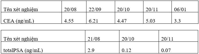 Sau 2-3 tháng điều trị. Bệnh nhân đã cho thấy kết quả ban đầu khả quan. Tình trạng bệnh của bệnh nhân ổn định không chỉ được thể hiện thông qua các triệu chứng lâm sàng mà còn thể hiện trên các xét nghiệm các dấu ấn ung thư.