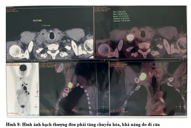+ Tại hạch cổ phải: Ung thư biểu mô di căn nguồn gốc tại phổi. EGFR(-)