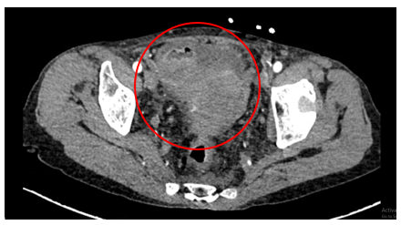 Hình 1: Hình ảnh khối vùng tiểu khung kích thước 52x69mm (vòng tròn đỏ).