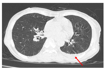 Hình 9: Chụp CT lồng ngực có tiêm thuốc cản quang sau điều trị không phát hiện hình ảnh nghi ngờ thứ phát.