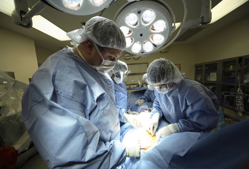 Nếu bệnh nhân mắc ung thư phổi không phải tế bào nhỏ được phát hiện trước khi nó lan sang các bộ phận khác của cơ thể hoặc mới chỉ xuất hiện ở một bên phổi, phẫu thuật là biện pháp tốt nhất. Các bác sĩ phẫu thuật có thể loại bỏ phần có khối u. Một số bệnh nhân được xạ trị hoặc hóa trị sau phẫu thuật để diệt các tế bào ung thư còn lại. Đối với bệnh ung thư phổi tế bào nhỏ phẫu thuật dường như không có giá trị vì tại thời điểm chẩn đoán, ung thư có thể đã lan sang các cơ quan khác của cơ thể.