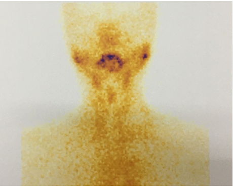 Hình 1. Hình ảnh xạ hình tuyến giáp với Tc-99m