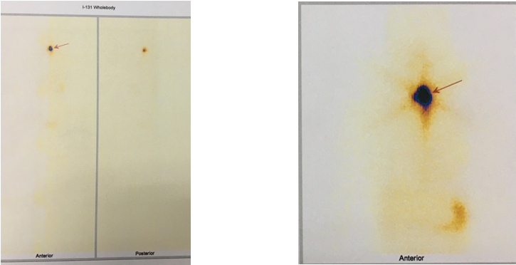 Hình 2: Hình ảnh chụp xạ hình tuyến giáp với I-131 sau điều trị liều 100mCi I-131