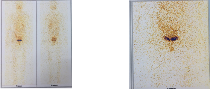 Hình 3. Hình ảnh xạ hình toàn thân với I-131 sau 6 tháng điều trị: