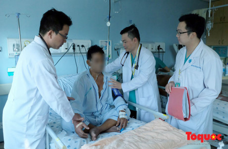 Các bác sĩ BV đại học y dược TP.HCM đang cấp cứu cho bệnh nhân bị nhồi máu cơ tim.