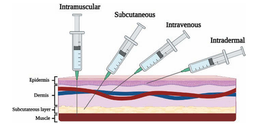 Hình 1. Minh họa một số đường đưa thuốc tiêm