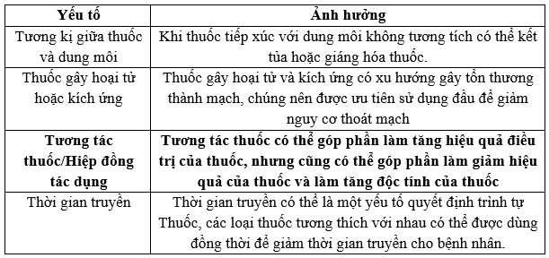 4.1 Các yếu tố ảnh hưởng đến trình tự truyền thuốc ung thư