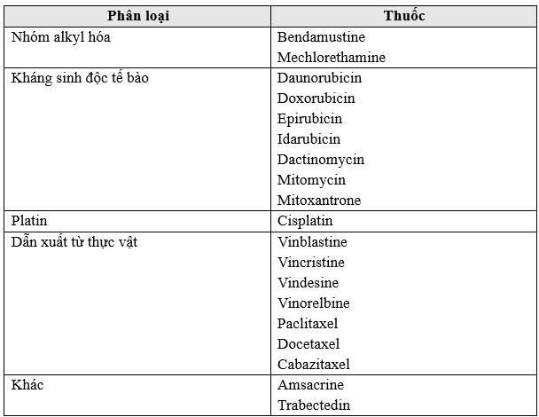Thuốc hóa trị có thể được phân loại dựa trên mức độ độc tính tại chỗ lên da thành ba nhóm: