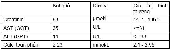 → Các chỉ số máu của bệnh nhân trong giới hạn bình thường.