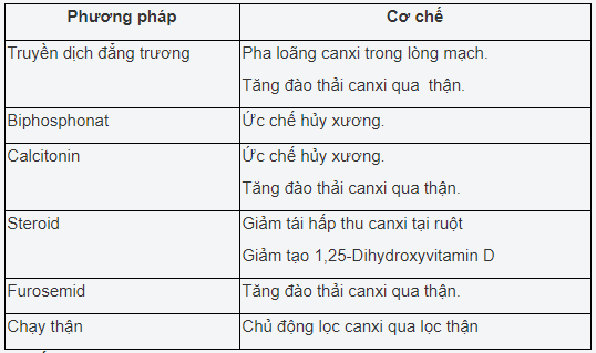 - Calcitonin 4-8UI/kg mỗi 6-12h. Kiểm tra canxi máu mỗi 6-12h.