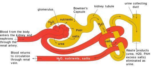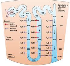 Vì nước tái hấp thu ở nephron trừ đoạn ống lượn quai Henle, nên hầu hết các chất được bài xuất vào nước tiểu và nồng độ các chất tăng dần dọc theo nephron (Xem hình 3).